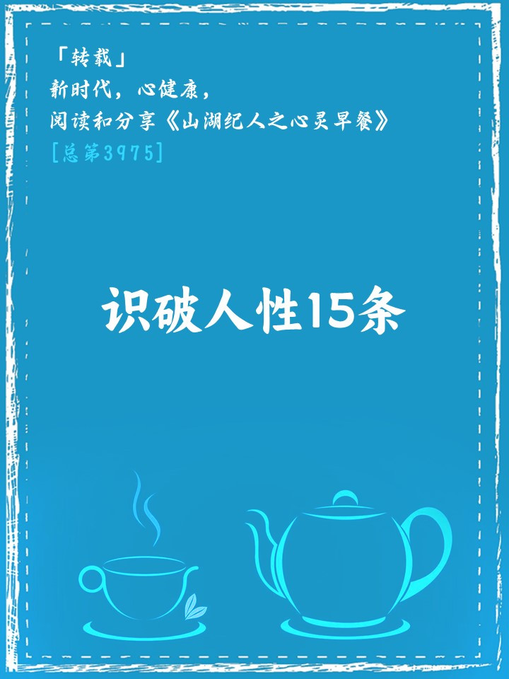 【宽宥转发《山湖纪东谈主之心灵早餐》,与趣者为伍,与智者为伴,与善者同业,咱们沿途传递正能量】