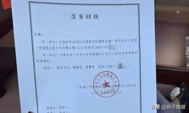 时女士展示的受案回握娇傲,她12月1日报称的上述被诈欺案,广州市公安局增城分歧局卫山派出所已受理,关联东说念主陶警官,聂警官。