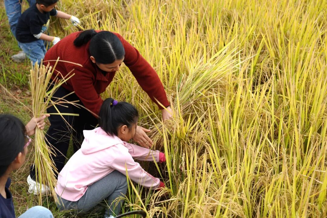 他们用脱粒机将一颗颗绝顶的稻米摘下